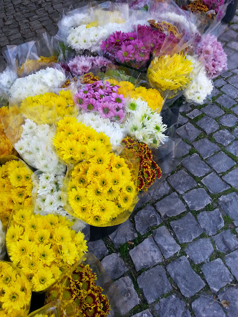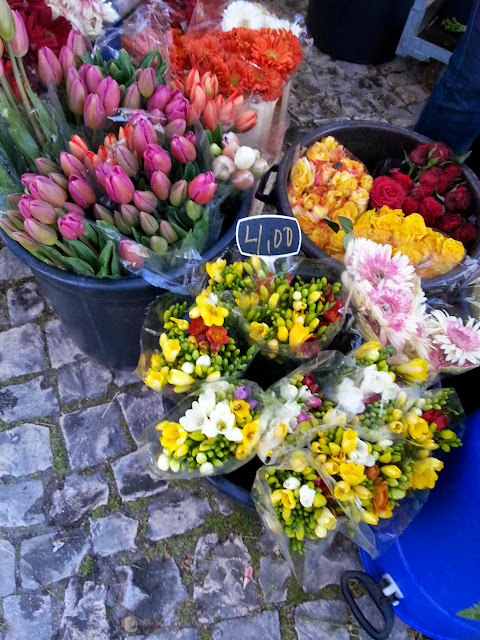 Hoje é sexta-feira e em Tomar é dia de mercado. Um mercado à antiga, sem grandes inovações em termos de produtos e apesar de eu gostar que houvesse coisas diferentes o que há é bom e de qualidade e eu gosto imenso de cirandar pelo meio das bancas de flores e vegetais.